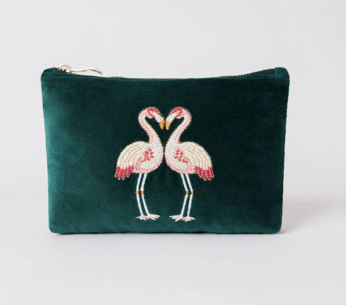 Elizabeth Scarlett Emerald Flamingo cosmetic bag